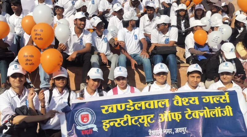 16 दिसंबर, जयपुर। खण्डेलवाल वैश्य गर्ल्स इंस्टीट्यूट ऑफ टेक्नोलॉजी (केवीजीआईटी) की एनएसएस स्वयंसेविकाओं एवं कार्यक्रम अधिकारियों ने राज्य स्तरीय सड़क सुरक्षा अभियान के भव्य शुभारंभ में सक्रिय सहभागिता निभाई। इस अभियान का शुभारंभ माननीय मुख्यमंत्री श्री भजन लाल जी द्वारा हरी झंडी दिखाकर तथा वाहनों पर रिफ्लेक्टर लगाकर किया गया। इस अवसर पर मुख्यमंत्री ने उपस्थित जनसमूह को सड़क सुरक्षा नियमों की पालना हेतु संकल्प भी करवाया। कार्यक्रम के अंतर्गत अमर जवान ज्योति से एक भव्य वाहन रैली निकाली गई, जिसका उद्देश्य आमजन को सड़क सुरक्षा के प्रति जागरूक करना रहा। कार्यक्रम में माननीया सांसद मंजू शर्मा एवं माननीय उप – मुख्यमंत्री श्री प्रेमचंद बैरवा की गरिमामयी उपस्थिति रही। इस अवसर पर केवीजीआईटी की प्राचार्या डॉ. अंजू गुप्ता ने कहा कि सड़क सुरक्षा एक सामाजिक दायित्व है तथा एनएसएस की स्वयंसेविकाएँ समाज में सकारात्मक परिवर्तन की सशक्त संवाहक हैं। कार्यक्रम के दौरान केवीजीआईटी एनएसएस की स्वयंसेविकाओं एवं कार्यक्रम अधिकारियों ने अनुशासित एवं उत्साहपूर्ण सहभागिता के साथ जन-जागरूकता गतिविधियों में भाग लिया और सड़क सुरक्षा नियमों के पालन का संदेश दिया। उनकी सक्रिय भागीदारी ने अभियान को सफल बनाने में महत्वपूर्ण योगदान दिया।