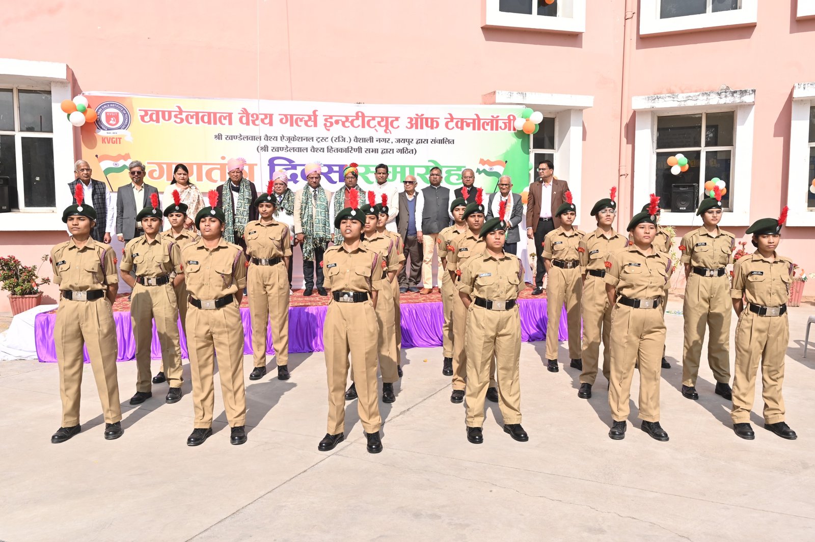 26 जनवरी जयपुर। खण्डेलवाल वैष्य गर्ल्स इंस्टीटयूट ऑफ टेक्नोलाॅजी में सोमवार को 77वां गणतंत्र दिवस समारोह मनाया गया। मुख्य अतिथि श्रवण कुमार सेठी रत्न व्यवसायी एवं समाज सेवी ,डॉ डी. के. गुप्ता वरिष्ठ दंत चिकत्सक एवं समाजसेवी, ओम प्रकाश गुप्ता वरिष्ठ अधिवक्ता एवं समाजसेवी, राजेश ताम्बी महामंत्री जयपुर जिला, बीजेपी उपस्थित रहे। कार्यक्रम में ट्रस्ट के संरक्षक मंडल से सोहन लाल ताम्बी आजीवन संरक्षक एवं संस्थापक अध्यक्ष, हनुमान सहाय गुप्ता आजीवन मानद संरक्षक , शम्भू दयाल गुप्ता आजीवन मानद संरक्षक, मदन लाल खण्डेलवाल आजीवन मानद संरक्षक , ट्रस्ट के पदाधिकारी कृष्ण मोहन खण्डेलवाल वरि. उपाध्यक्ष, विष्णु प्रसाद महरवाल उपाध्यक्ष, मुरारी लाल गुप्ता आजीवन मुख्य संरक्षक एवं महामंत्री , सुभाष चंद गुप्ता मंत्री , सूर्य प्रकाश बडाया कोषाध्यक्ष एवं कॉलेज प्राचार्या डॉ. अंजु गुप्ता ने झंडारोहण किया। कार्यकारिणी सदस्यों के द्वारा सभी मुख्य अतिथियों का स्वागत किया गया। मुख्य अतिथियों द्वारा उपस्थित छात्राओं एवं शिक्षकों को संबोधित करते हुए भारतीय संविधान की महत्ता, लोकतांत्रिक मूल्यों, नागरिक कर्तव्यों तथा राष्ट्र निर्माण में शिक्षा की भूमिका पर विस्तार से प्रकाश डाला गया। कार्यक्रम में एनसीसी परेड द्वारा सलामी दी गई। छात्राओं की सक्रिय सहभागिता एवं अनुशासित उपस्थिति सराहनीय रही। संपूर्ण वातावरण राष्ट्रभक्ति की भावना से ओतप्रोत रहा। समारोह के अंत में महाविद्यालय प्राचार्या ने सभी मुख्य अतिथियों, ट्रस्ट के पदाधिकारियों का धन्यवाद ज्ञापित किया।