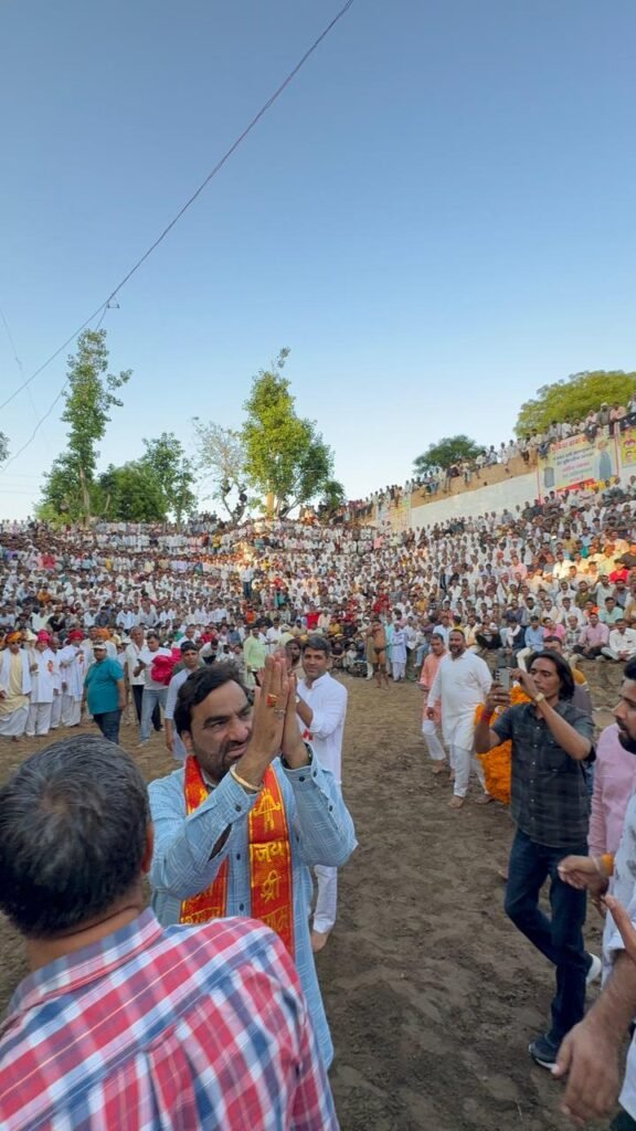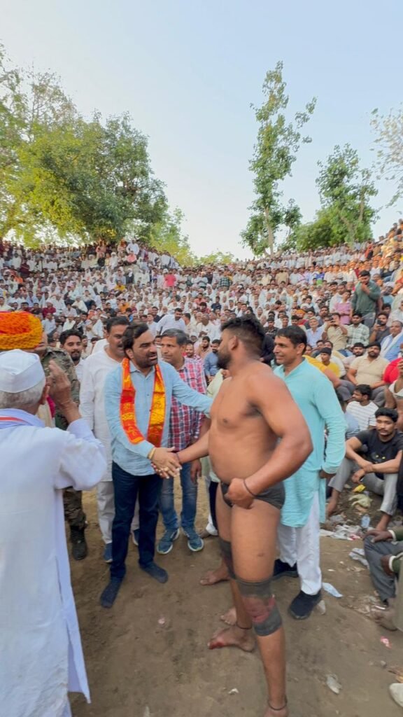 7 अप्रैल, भरतपुर। भरतपुर मंगलवार को राष्ट्रीय लोकतांत्रिक पार्टी के सुप्रीमो व नागौर सांसद हनुमान बेनीवाल भरतपुर जिले के दौरे पर रहे। जहां उन्होंने पथैना गांव में आयोजित आयोजित अंतर्राष्ट्रीय विराट कुश्ती दंगल में सम्मिलित हुए। कार्यक्रम में पहुंचने से पहले सांसद बेनीवाल का जगह – जगह स्वागत हुआ वहीं आयोजनकर्ता व ग्रामीण सांसद को कार्यक्रम स्थल तक जुलूस के रूप में लेकर गए जहां उनका पारम्परिक रूप से भव्य स्वागत किया। इस अवसर पर बेनीवाल ने पहलवानों से मुलाकात की व कुश्ती को भारत के पारम्परिक खेल का हिस्सा बताया और कहा कि ऐसे आयोजनों से कुश्ती का इतिहास बना रहेगा। उन्होंने जन – समूह को संबोधित करते हुए कहा महाराज सूरजमल ने इस राष्ट्र में सर्व समाज के हितों की लड़ाई लड़ी और अजेय योद्धा के रूप में आज हमें उन्हें याद करते है, सांसद ने कहा महाराज सूरजमल का त्याग और बलिदान हमारे समाज के गौरवमय इतिहास का हिस्सा है जो सदैव युवाओं को प्रेरणा देता है। उन्होंने विभिन्न सामाजिक और राजनैतिक मुद्दों पर भी अपनी बात रखी और भजनलाल सरकार पर आरोप लगाए,कहा जनता के काम सरकार में हो नहीं रहे है और मुख्यमंत्री को धरातल की कोई जानकारी नहीं है, सांसद ने कहा पर्ची सरकार अब अंतिम पड़ाव पर है।