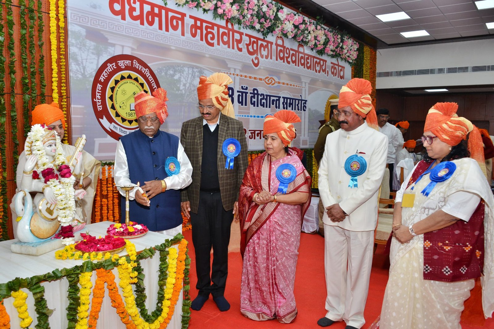 राज्यपाल श्री हरिभाऊ बागडे गुरुवार को वर्धमान महावीर खुला विश्वविद्यालय के 18 वें दीक्षांत समारोह को संबोधित कर रहे थे। इस अवसर पर श्री बागडे ने विश्वविद्यालय के विभिन्न पाठ्यक्रमों में 75 हजार 925 उपाधियों सहित तीन पीएचडी उपाधियों से विद्यार्थियों को विभूषित किया।